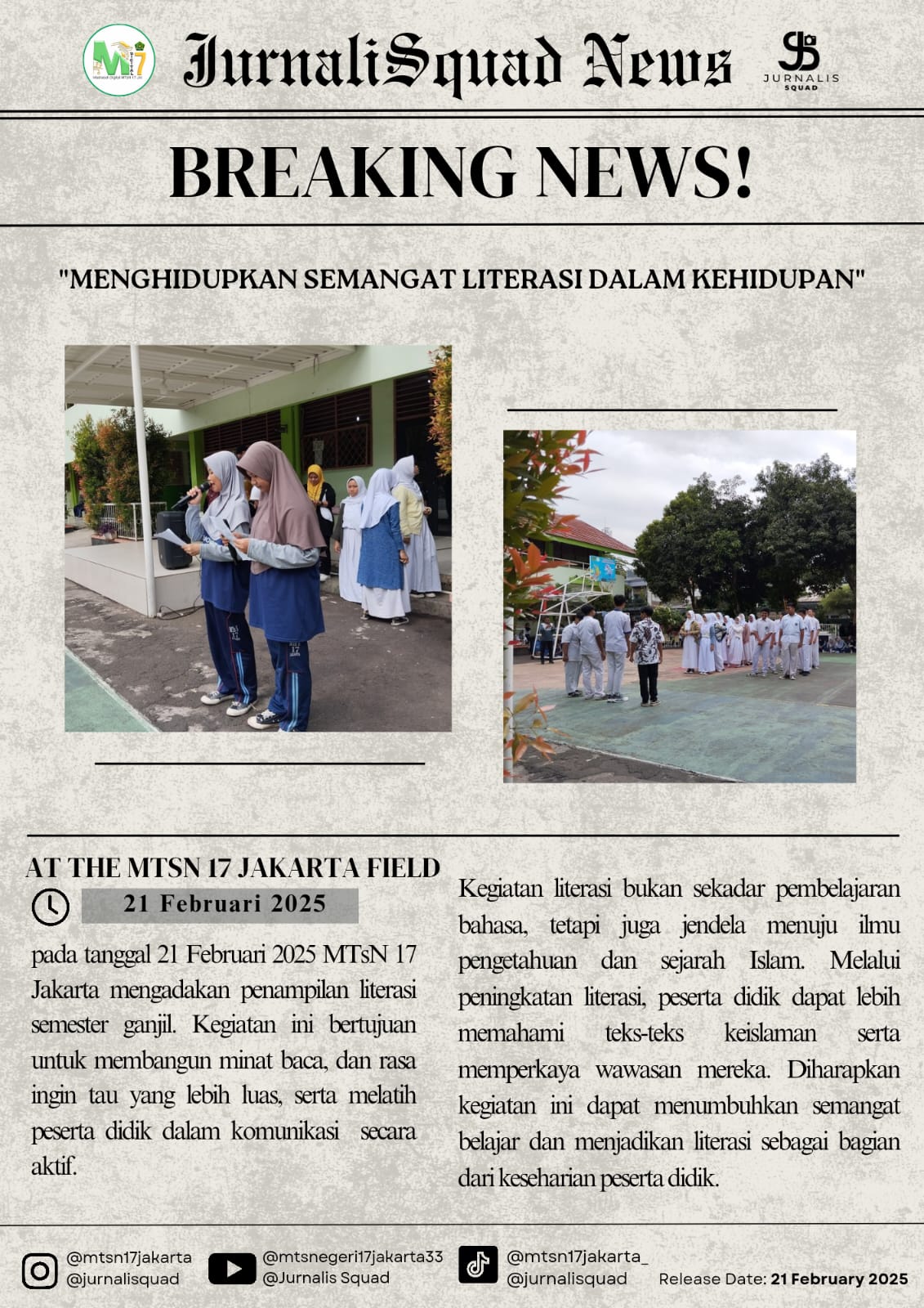 Liputan digital e-newspaper Menghidupkan Semangat Literasi dalam Kehidupan oleh Tim Jurnalistik MTsN 17 Jakarta