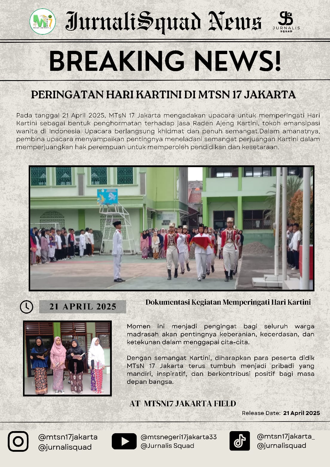 Liputan digital e-newspaper MTsN 17 Jakarta menyelenggarakan upacara peringatan Hari Kartini Tahun 2025