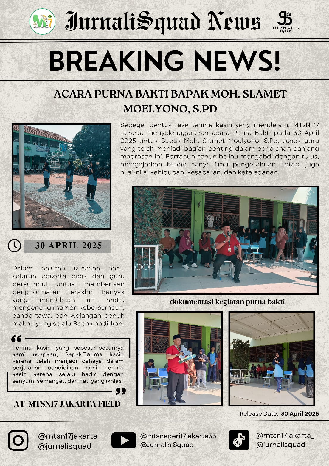 E-Newspaper MTsN 17 Jakarta Purnatugas Bapak Moh. Slamet Moelyono, S.Pd