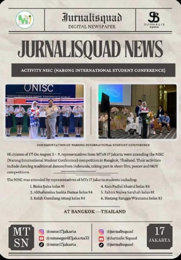 Liputan digital newspaper Kegiatan NISC (Narong International Student Conference) dengan tema "Marine resources Define Tomorrows' World" yang diselenggarakan di Thailand, 5 hingga 9 Agustus 2024.